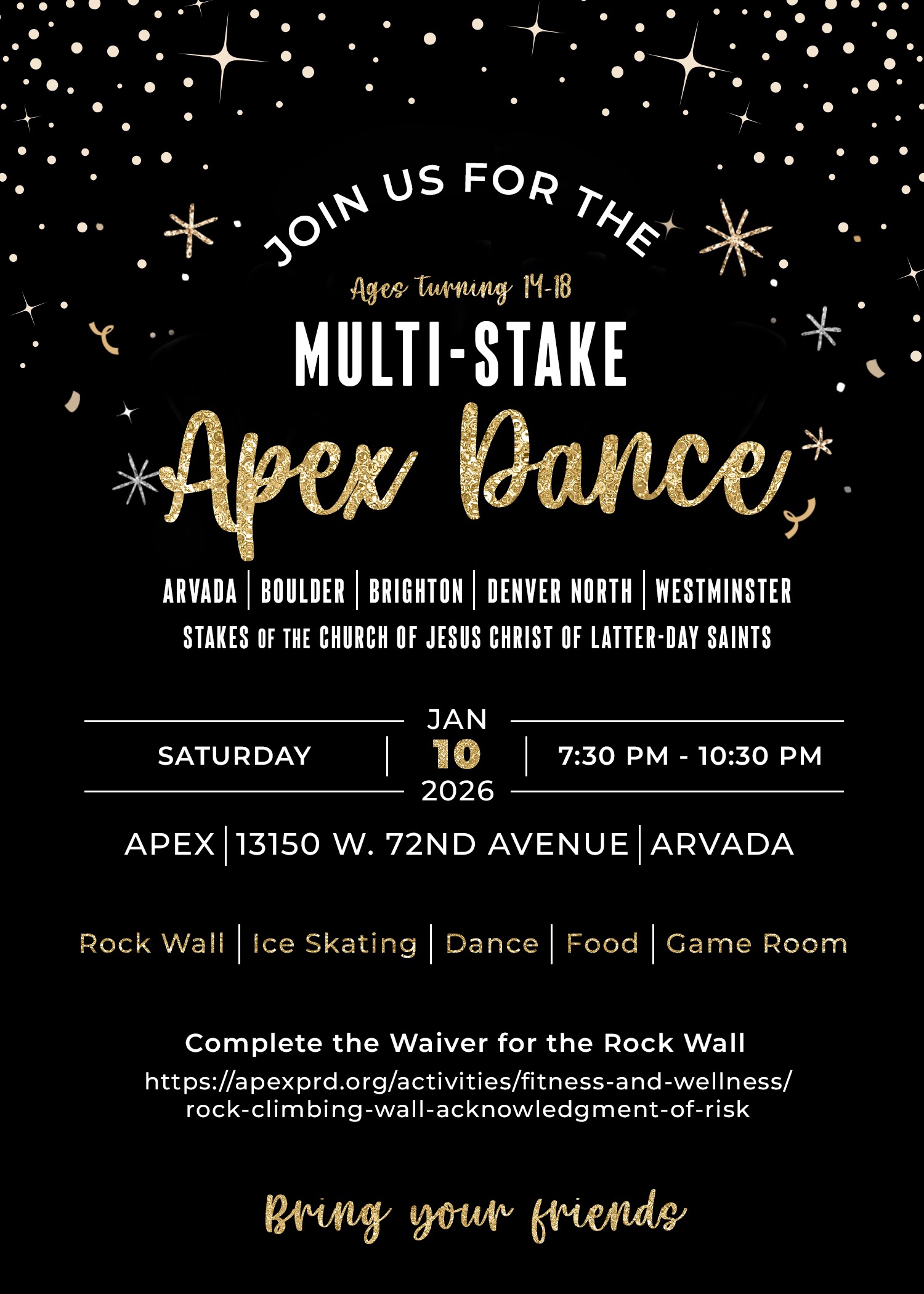 Jan. 10th: Multi-Stake Activity, Apex Center, 7:30-10:30 pm (14+)